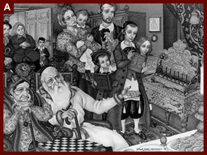 ve özellikle sinagoglardaki duvar boyalarında, vitray camlarda ve