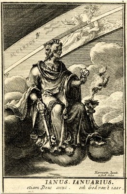 Janus, January (Ocak) Engraving by Jacobus Harrewyn, Amsterdam, 1698 British Museum